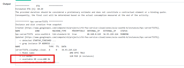 Every time you execute a simulation, a specific hard disk is allocated to actually compute the simulation. Currently most of the times this hard disk size is 400 GB. There are few exceptions though: